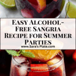 Right before you’re ready to serve, stir in 1 cup of sparkling water or club soda to add light, refreshing bubbles. This sparkling finish is what makes the Alcohol-Free Sangria Recipe so celebratory and delightful.