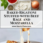 This baked rigatoni stuffed with beef ragù and mozzarella is the ultimate comfort-food pasta bake. Tender rigatoni tubes are filled with a rich, slow-simmered beef sauce, topped with melty mozzarella, and baked until golden and bubbly, making it a perfect hearty dinner.
