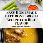 Nourishing, collagen-rich beef bone broth that is perfect for sipping on its own or using as a flavorful base for soups and stews. This easy-to-make broth extracts deep flavors and nutrients through slow roasting and gentle simmering, resulting in a rich, comforting liquid packed with health benefits.