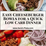 This Cheeseburger Bowls Recipe has become one of my go-to quick meals when I want the comfort of a burger without the carbs or heaviness of a bun. It’s incredibly satisfying, fresh, and versatile enough to make your own. I really encourage you to try it out—once you do, I bet it will quickly find a permanent spot in your rotation just like it did in mine!