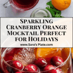 A festive and refreshing cranberry orange mocktail featuring tart cranberry juice and bright orange juice, topped with sparkling water for a bubbly finish. Perfect for holidays and special occasions, this easy-to-make nonalcoholic beverage offers a vibrant blend of flavors and a beautiful presentation.