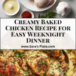 For a family-style presentation, serve the entire baking dish at the table so everyone can dig in and enjoy the steaming creamy sauce. Alternatively, plating individual chicken breasts with a drizzle of the sauce and a sprinkle of herbs makes a beautiful, restaurant-worthy presentation that will impress guests effortlessly.