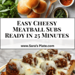 Easy Meatball Sub is a hearty and delicious sandwich featuring juicy cooked meatballs smothered in rich marinara sauce, topped with melted mozzarella and Parmesan cheese, all nestled in a toasted sub roll. Perfect for a satisfying and comforting meal that’s quick to prepare.