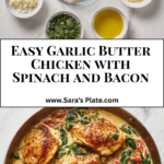 Trust me, once you make this Garlic Butter Chicken with Spinach and Bacon Recipe, it will quickly become a beloved staple in your kitchen. It’s rich but not heavy, hearty yet fresh, and comes together faster than you might expect. Give it a try and watch it turn into the ultimate comfort meal you reach for again and again.