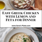 Serve this Greek Chicken with Lemon and Feta Recipe alongside fluffy rice or roasted potatoes to soak up the tangy juices. A crisp cucumber and tomato salad dressed lightly with olive oil and vinegar also makes a refreshing, crunchy complement.