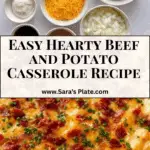 A hearty and savory casserole featuring layers of seasoned ground beef, thinly sliced potatoes, and melted cheddar cheese, perfect for a comforting family dinner.