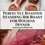Present your standing rib roast on a sturdy wooden board, carving it tableside to impress your guests. A scattering of coarse sea salt and cracked black pepper on top just before serving adds both drama and an extra flavor boost.