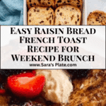 Top your Raisin Bread French Toast Recipe with powdered sugar for a snowy sweet touch, swirl on some maple syrup to enhance the warm spices, or fresh fruit like sliced strawberries or blueberries to add brightness and color. Each garnish transforms the dish just a bit while keeping it classic and irresistible.