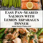 - Finish and Serve: Return the seared salmon fillets to the skillet, nestling them among the asparagus. Spoon some of the lemon butter sauce over the top to coat the salmon before serving immediately.