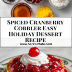 A warm, spiced holiday cobbler filled with tart cranberries, sweetened with brown sugar, and topped with a golden, buttery biscuit crust. Perfect for Thanksgiving, Christmas, or any winter gathering.