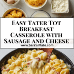 A hearty and comforting Tater Tot Breakfast Casserole featuring crispy tater tots layered over savory breakfast sausage, sautéed vegetables, and a creamy mixture of eggs, milk, and cheese. This baked breakfast dish is perfect for family meals, weekend brunches, or make-ahead meal prep.