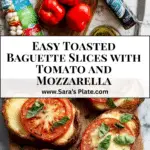 If you happen to have leftovers, keep the toasted baguette slices separate from the toppings in airtight containers. This prevents sogginess and preserves the crisp texture of the bread. Store the sliced tomatoes and mozzarella in the fridge to keep them fresh for up to two days.