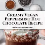 A creamy and refreshing vegan peppermint hot chocolate made with rich cocoa, plant-based milk, and a hint of peppermint extract, topped optionally with crushed candy canes for an extra festive touch.